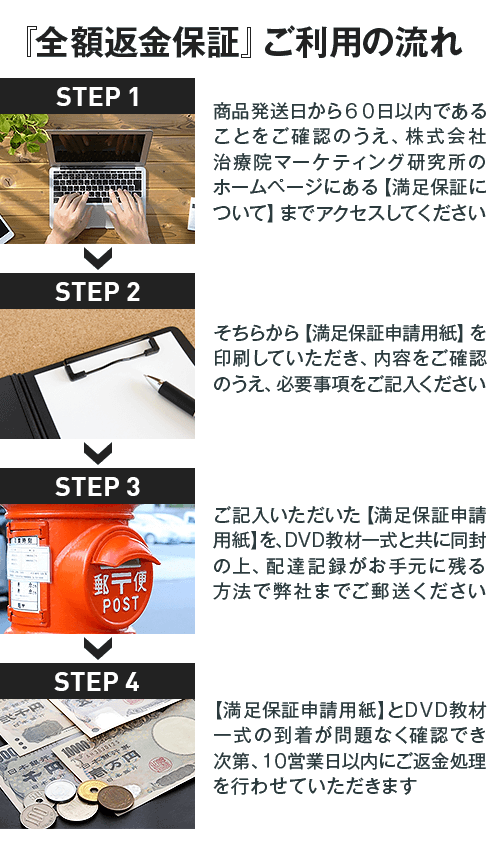 ※満足保証については、治療院マーケティング研究所のホームページの『満足保証について』のページ