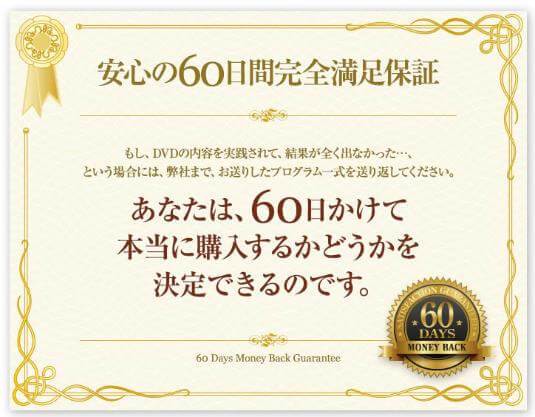 そこで、お求めいただいたDVDの[全額返金満足保証]サービスを設けております。DVDをお手に取っていただき、今よりも技術的なスキルが上がらない、または実践したにも関わらず効果がみられないという場合でもご安心ください。