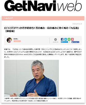 「痛みに効く」「予約1ヶ月待ち」の治療法として、つい先日、学研プラスが発行する情報メディア『GetNavi web』から取材オファー!