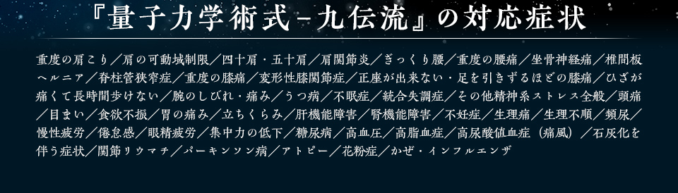 その間、自腹で10分5万円の治療を受けに行ったり、30種を超える洗礼や滝行、回峰行など、治せそうなものは何でも貪るように勉強をしました。治療に繋がるものであれば、医学書や最新の研究にも目を通し、これまで延べ13万回にも上る施術を経て遂に体系化された治療法が九伝流です。