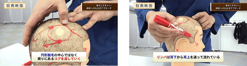薄毛に絶大な効果を発揮する、頭部への九伝流アプローチも追加で特別収録しました!