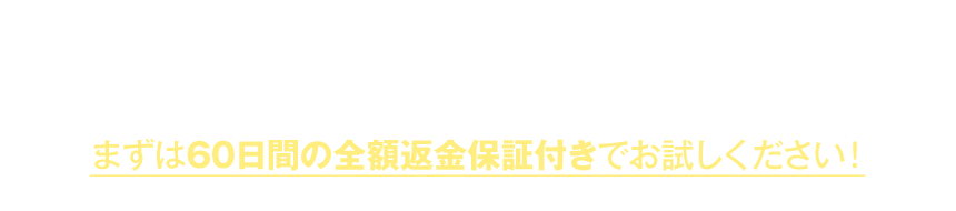 弊社の商品配送日から60日以内(必着)であれば、無条件で全額返金させていただきます。あなたが充分に納得された上でお使いいただきたいので、どうぞ安心してお試しください。
