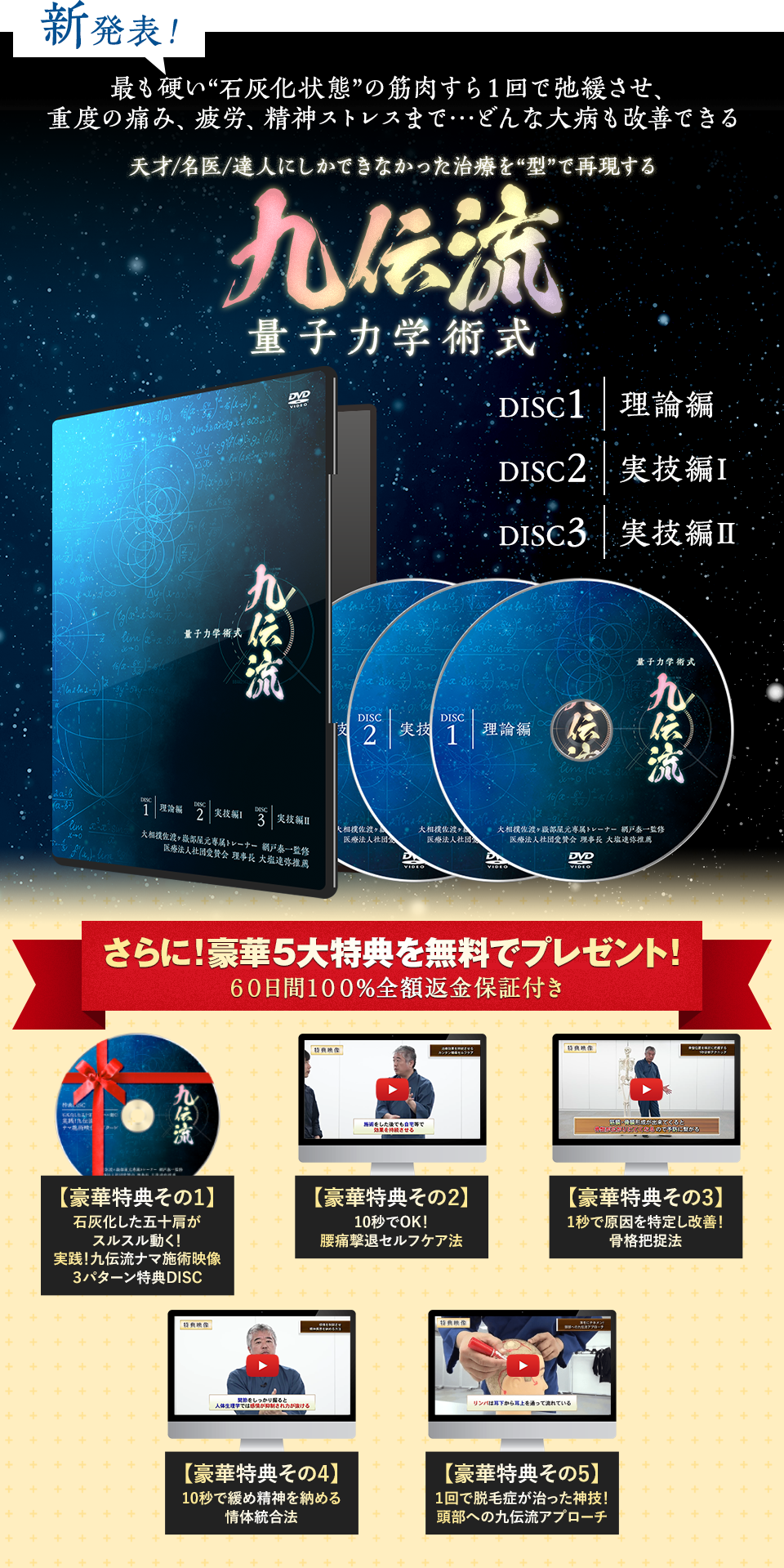 | 【特典1】実践!九伝流ナマ施術映像3パターン特典DISC | 0円 |